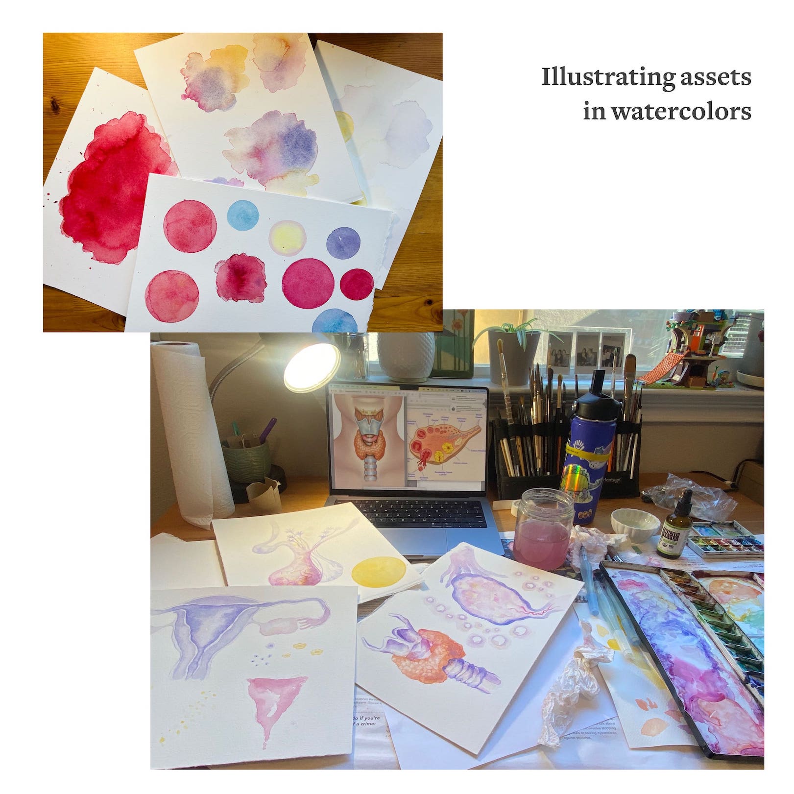 As a watercolorist at heart, I wanted to use real paint, not digital, to show that a real person who cares made this. I love the “happy accidents” that watercolor washes create. They bring brightness and unpredictability to the work.